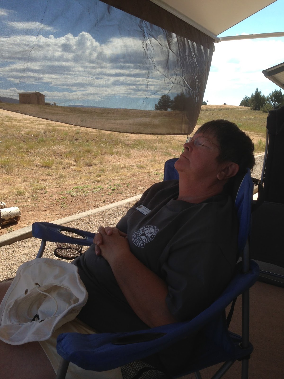We are here at Rifle Gap State Park, Colorado, thru September 5th. "I" have volunteered as Campground Host and enjoying all of it. Rifle Gap is one of three nearby State Parks, Rifle Falls and Harvey Gap are the other two, all within 10 miles of each other and nestled in the mountains, with really nice lakes at the two Gaps Parks. Host duties include a five day work week (Tuesday & Wednesday off) with about 20 hours/week actual work, (which isn't real work) greeting guests as they arrive, cleaning the sites when they vacate, and about an hour bathroom duty each day. Rifle Gap is the nicest State Park we have ever stayed in. The sites are all concrete pads, with paved driveway and graveled picnic area with shaded cover. These are also full hook up sites. The entire park is immaculate.... We're enjoying the stay. You may have noticed that "I" volunteered.... Actually, both of us volunteered willingly, but June was asked if she wanted to work in the office, which she did, so they are hiring her as a Colorado State employee. She set the terms which were four mornings per week - Friday thru Monday. We take off every Tuesday and Wednesday and Thursday is a very slow day, so this works well "and" we have an income to boot (notice I said "we" - actually just June but that works for me)